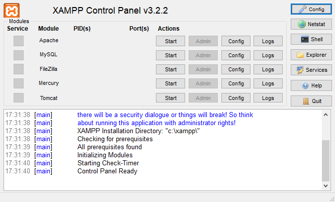 When everything went well, you should be able to open up the XAMPP Control Panel