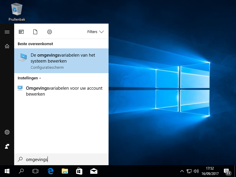 Make sure to take the omgevingsvariabelen van het **systeem** bewerken application and not the omgevingsvariabelen voor uw account bewerken.