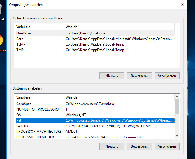 Search for the Path variable at the bottom in the Systeemvariabelen part of the window, and select it. Then press on Bewerken... button.